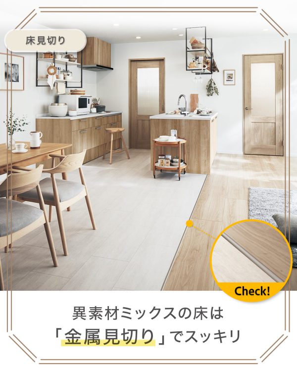 ■異素材ミックスの床は「金属見切り」でスッキリ