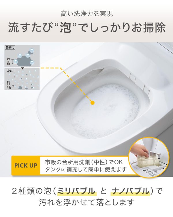 流すたびに泡の力でしっかりとお掃除することで高い洗浄力を実現